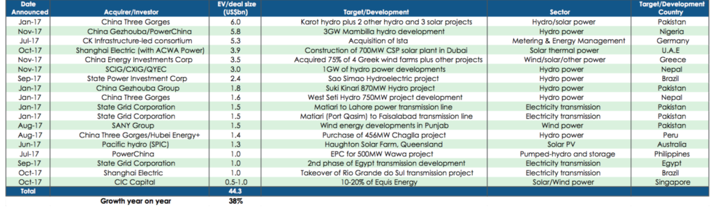 IEEFA has identified large Chinese international clean-energy projects and takeovers totalling more than $44bn for 2017, compared to $32bn identified in 2016.