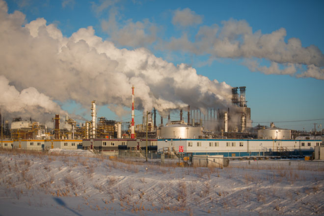 Steam and smoke rise from the Canadian Natural Resources plant near a Fort McKay First Nation reserve in Alberta. Fort McKay Chief Jim Boucher says environmentalists were “the ones who, at the end of the day, were successful in creating poverty in northern Canada.” Credit: Darren Hauck for Reveali