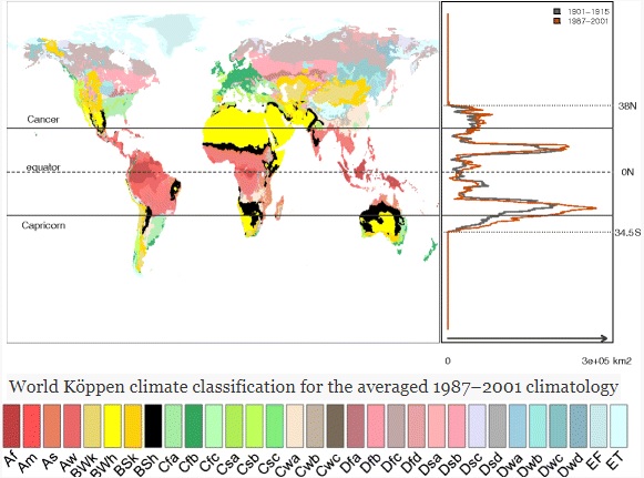 We show that a global expansion of this climatic domain has already started according to climate observations in the twentieth century (about + 13% of surface increase, i.e. from 6 to 7% of the global land surface). Models project that this expansion will continue throughout the twenty-first century, whatever the scenario…