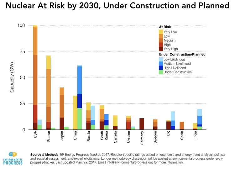 1) The first option would be for governments and industry to clear away the (many!) obstacles hindering construction of new light-water reactors, the most common type of reactor built in the 20th century. This technology is proven to work, after all — it supplies one-fifth of America’s electricity — and South Korea has figured out how to build such reactors affordably. So more nations would need to mimic South Korea, relying on standardized designs and economies of scale to drive down costs and expand their nuclear fleets. Michael Shellenberger, a pro-nuclear advocate with Environmental Progress, has made this case eloquently here.