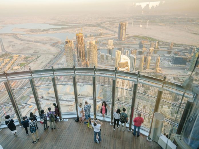 Visitors peer over Dubai from an observation deck at the Burj Khalifa, the world’s tallest skyscraper at 2,717 feet (828 meters). Dubai aims for superlatives: It’s now racing to become one of the planet’s most sustainable cities. The emirate will showcase its efforts as host of Expo 2020, also known as the world’s fair, a six-month exhibition with sustainability as one its themes.