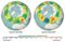 The left image shows the global circulation pattern on a normal day. The right is an example of circulation during an extreme weather episode. The red and blue areas show extreme wind speeds going north and south.