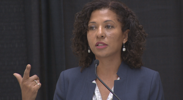 Sandra Odendahl, president and CEO of CMC Research Institutes, says the new research station is a unique site where atmospheric, surface and subsurface technologies for fluid and emissions monitoring will be developed. (CBC)