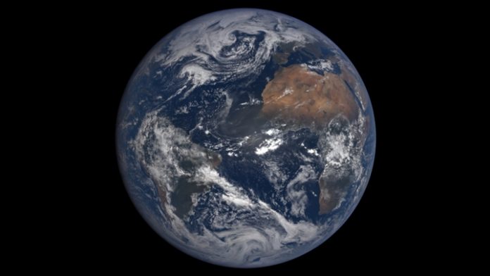 Earth as seen by the EPIC imager on the DSCOVR satellite on March 29, 2017.