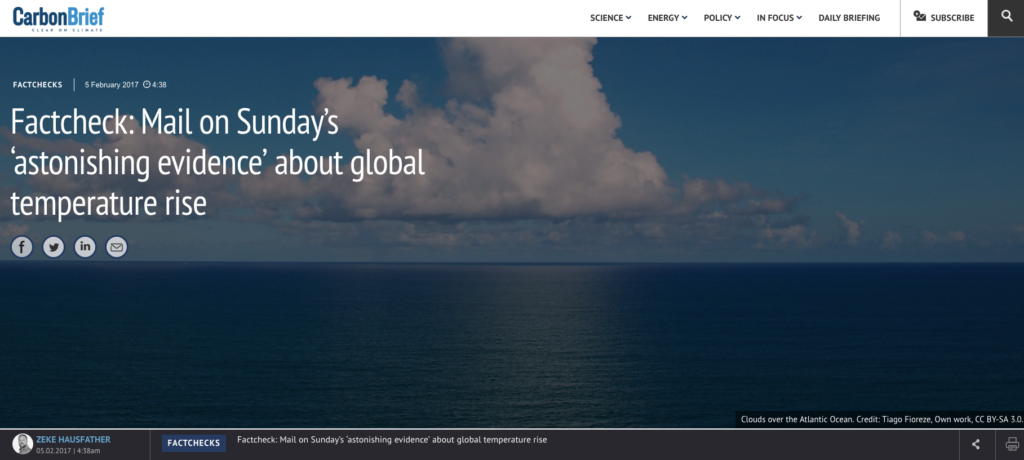 While the study generated a substantial amount of news coverage when it was published, it received a subsequent bounce when NOAA’s SST record became the centre of an alleged “whistleblower” article in the Mail on Sunday, which accused NOAA of manipulating climate data to show more warming in recent years.