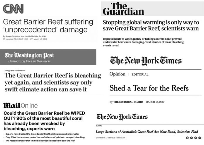 The study, led by Prof Terry Hughes of the ARC Centre of Excellence for Coral Reef Studies in Australia, assessed the impact of coral bleaching events in 1998, 2002 and 2016 on the Great Barrier Reef. As Carbon Brief reported, the study concluded that “immediate action to curb future warming” is essential if coral reefs are to survive.