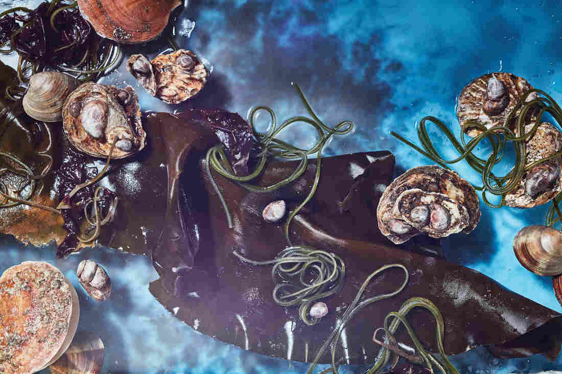Kombu, kelp, oysters, clams and other mollusks. If we farm seaweeds like kelp and kombu and protect bivalves, they could become a reliable source of food in the future, especially for coastal communities, says Wist. Heami Lee/Courtesy of Allie Wist, food stylist C.C. Buckley, prop stylist Rebecca Bartoshesy hide caption