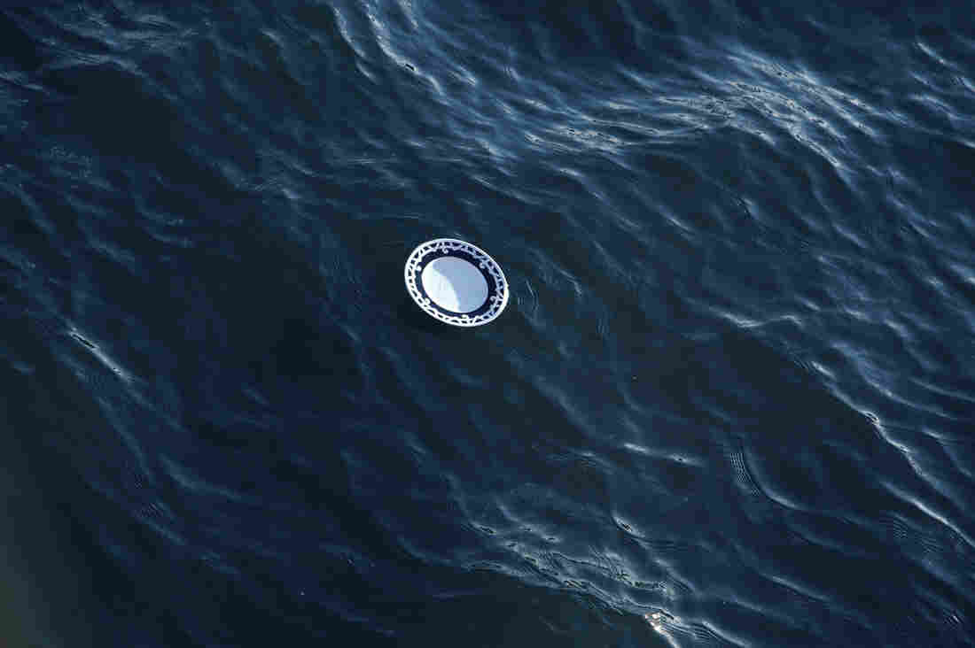 A dinner plate floats in New York City’s East River. “It said something about just getting swept away and belongings being flooded,” says Wist. But it also implied “us persevering… and eating dinner despite that.” Courtesy of Allie Wist hide caption