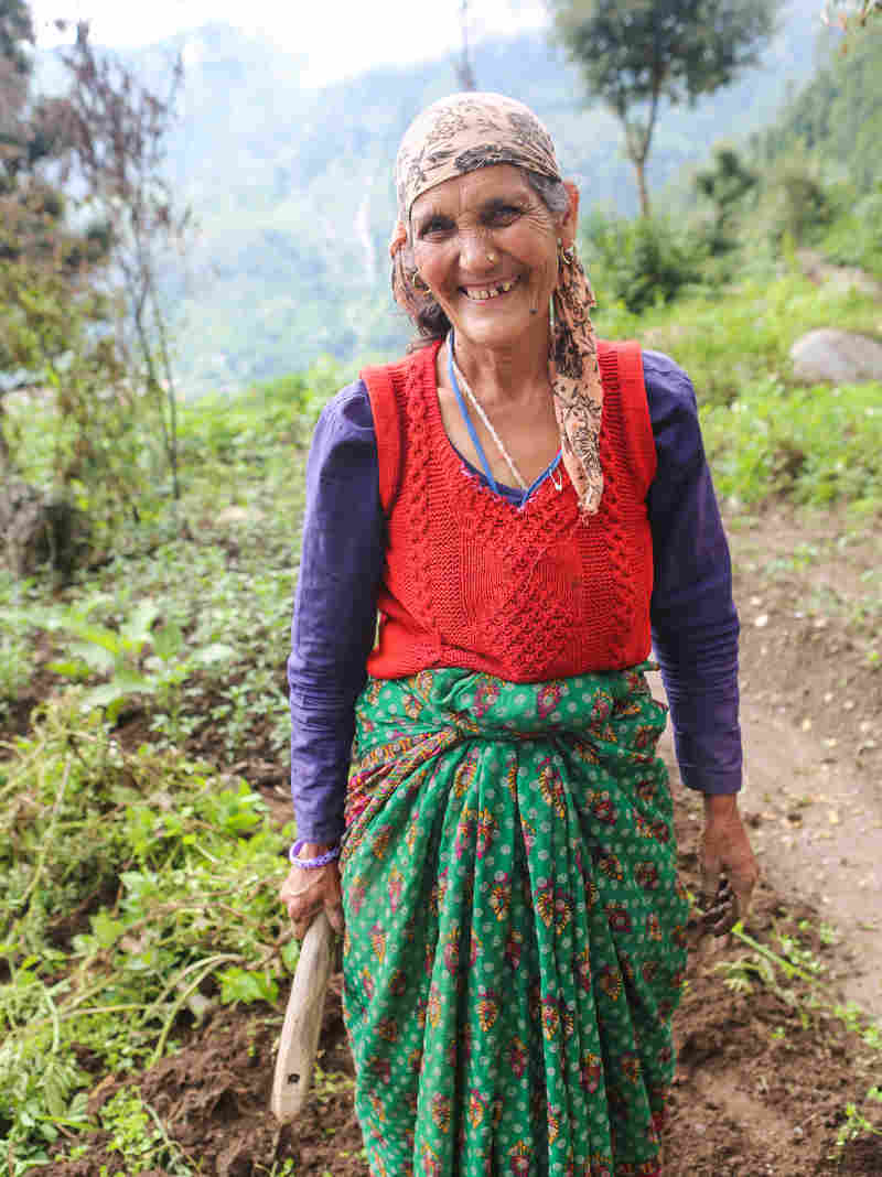 Surji Devi, 60, is a farmer in the village of Huddu in Uttarakhand. Julie McCarthy/NPR hide caption