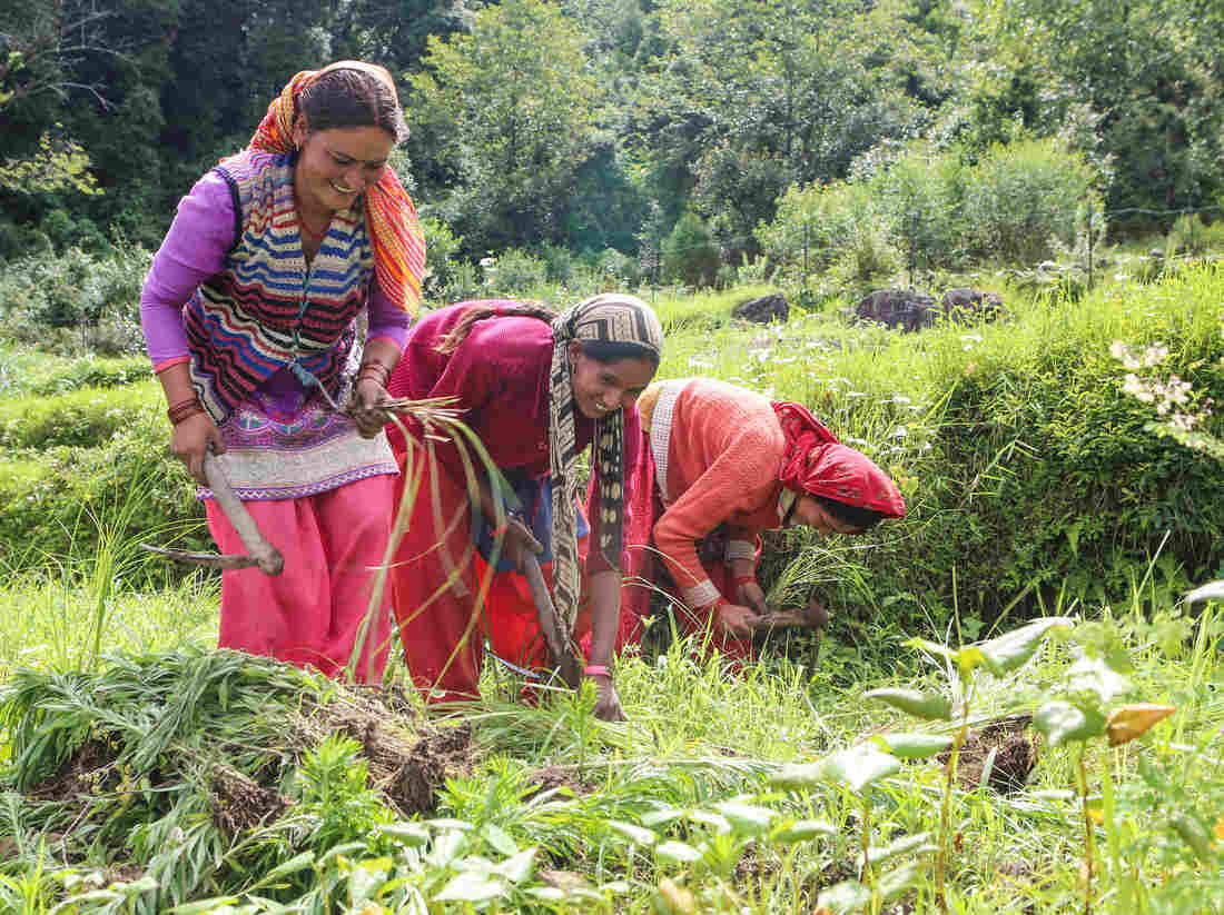In the upper reaches of the northern state of Uttarakhand, small villages are rain- and snow-fed. As snowfall has declined, farmers are starting to plant crops in winter, when fields would usually lie fallow. Julie McCarthy/NPR hide caption