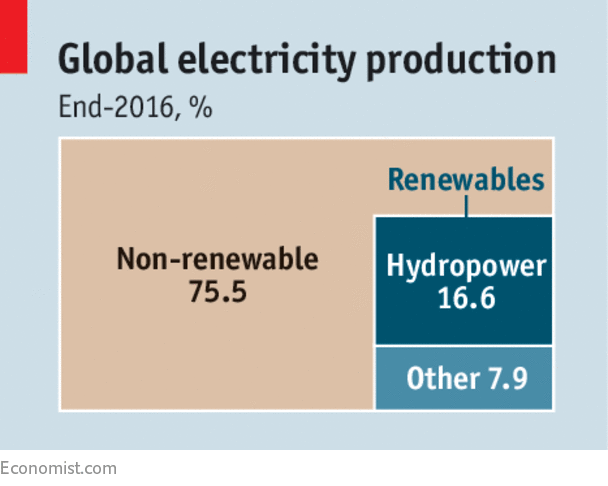 It would be better, as the Paris agreement urges, for countries to focus on reductions in emissions rather than to set goals for renewable energy. Global emissions have stabilised in the past three years, which is encouraging. But to stand a chance of mitigating global warming, they must start falling sharply and keep doing so for decades. The world will move in that direction with the help of wind and solar. It will not get there without big advances on every other front as well.