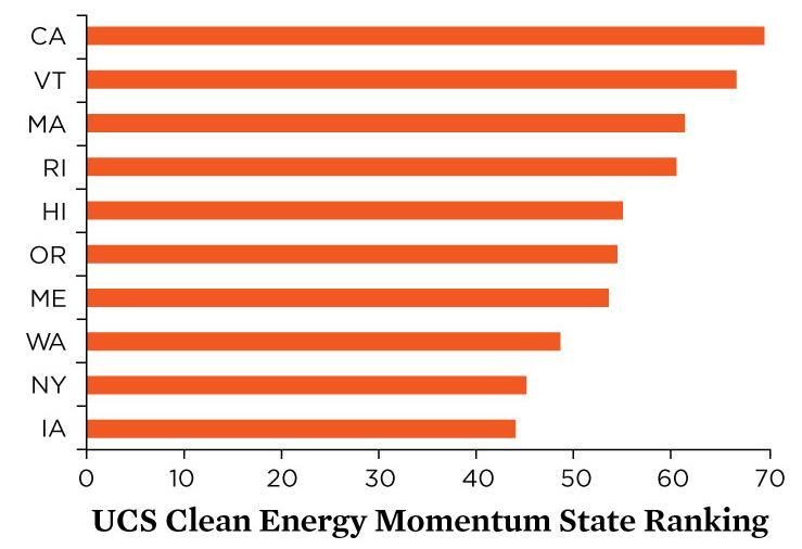• States have to continue to drive clean energy momentum by adopting policies for continued progress in a whole lot of areas, from renewable energy and efficiency, to vehicle electrification, to economy-wide reductions in global warming pollution.