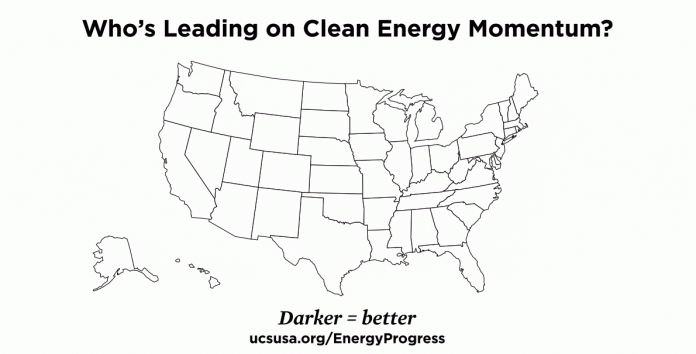 So, all together, those pieces gave us Clean Energy Momentum: Ranking State Progress. And when we put it together and looked at the numbers, here’s what we found.