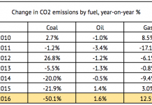 Carbon Brief analysis shows the UK’s CO2 emissions fell by 5.8% in 2016, after a record 52% drop in coal use.