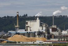 In this June 1, 2016, file photo, piles of wood chips sit...