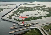 The huge, floating concrete barge gate that closes half of the Gulf Intracoastal Waterway as part of the Lake Borgne Surge Barrier poses the greatest flooding...