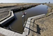In this photo taken July 15, 2015, water flows down a canal near Byron.