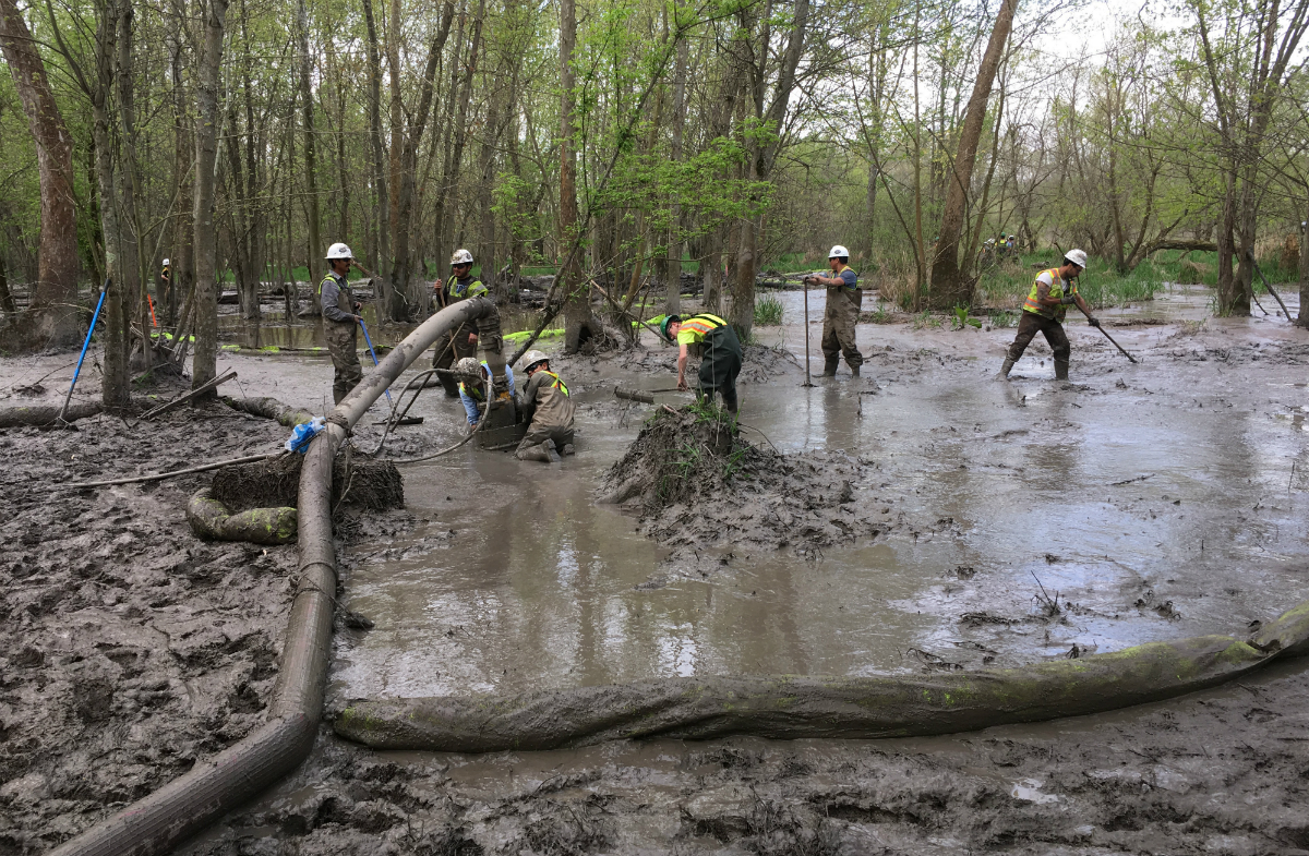 The worst violation was on April 13 and involved the release of “several million gallons” of what’s called “bentonite slurry”—thick mud laced with chemicals used to help drill underground to create space for laying down pipe—into some of the state’s highest quality wetlands. The mud coated the wetlands, smothering vegetation and aquatic life in an ecosystem that helps filter water between farmland and nearby waterways.