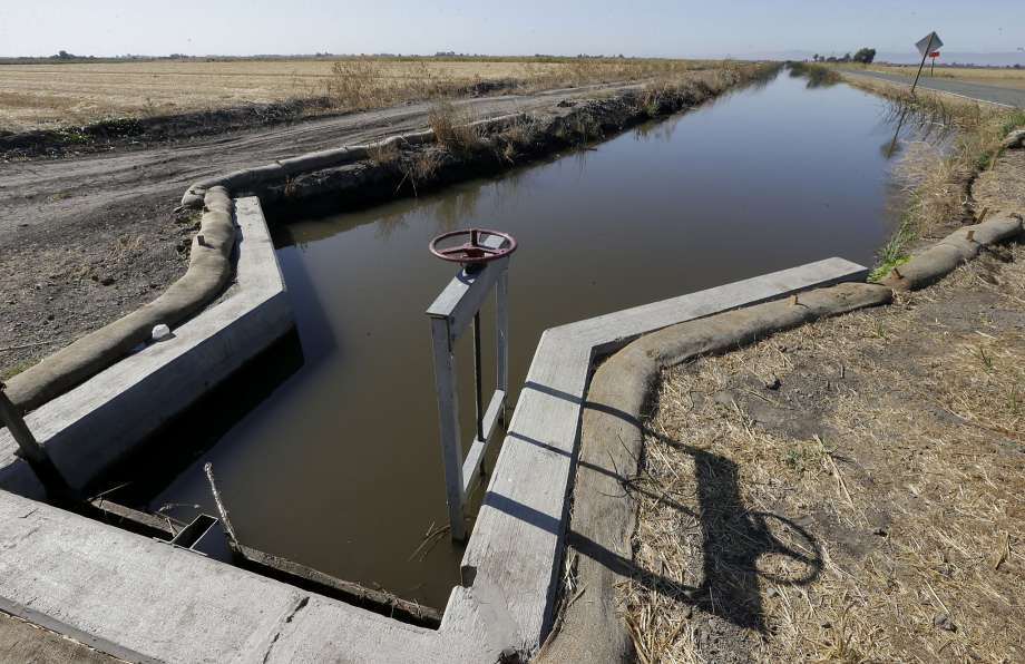 In this photo taken July 15, 2015, water flows down a canal near Byron.