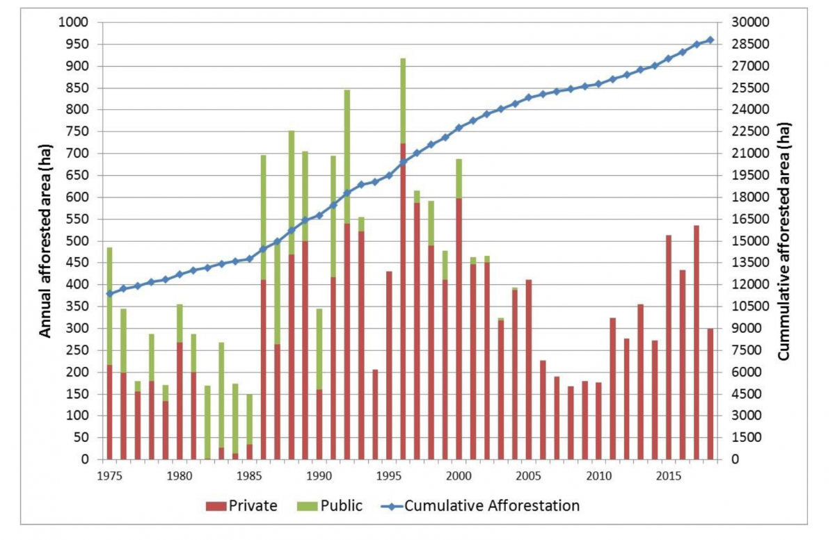 This move appears to have influenced a jump in non-farmer planting in the county, with investor-led afforestation jumping from just over one per cent in 2016 to 19.4 per cent in 2017.