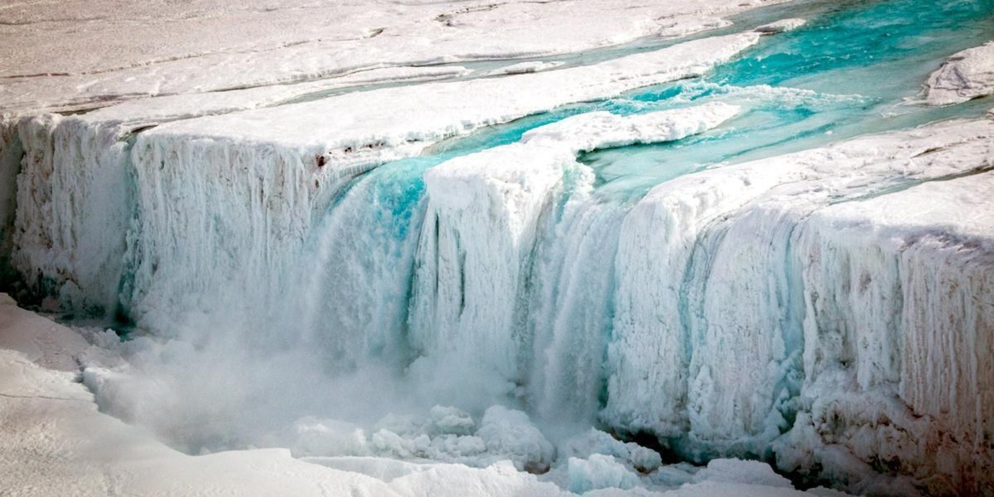 And they found that such systems carried water for 120km. A second research team reporting a companion study in the same issue of Nature identified one meltwater system with an ocean outflow that ended in a 130-meter wide waterfall, big enough to drain the entire surface melt in a matter of days.