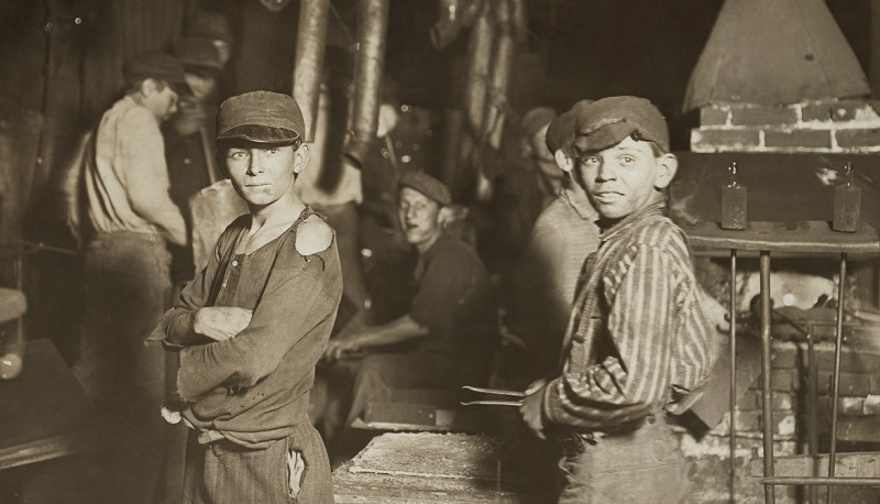 Photo: Child labor in Indiana Glass works, 1908. Public domain