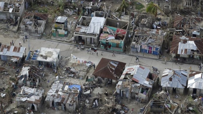Aerial view of homes that were damaged during Hurricane Matthew in 2016.Rebecca Blackwell/AP