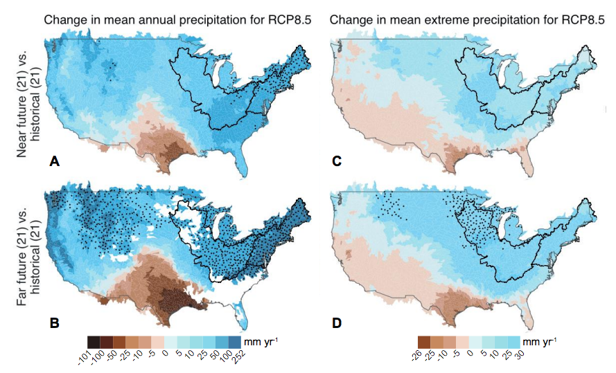 Michalak and her colleagues analyzed 21 different climate models to see how rainfall is likely to change by mid-century and by 2100. If we do nothing to address climate change, there’s likely going to be more rain almost anywhere in the US, except in the Texas area. There are likely also going to be more extreme storms, especially in the Midwest and Northeastern US. Even if the amount of nitrogen we put in the environment doesn’t increase, and we don’t do anything to address the problem, the increased rain will carry more nitrogen into waterways, the study found. The Northeast could see an almost 30 percent increase in nitrogen runoff, the upper Mississippi Atchafalaya River Basin a 24 percent increase, and the Great Lakes a 21 percent increase, the study says.
