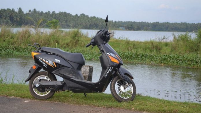 Scooters like Hero Electric’s Optima, with a top speed of 25 km/h, do not require a driving licence, registration or number plate (Pic: Viswaprabha via Wikimedia Commons)