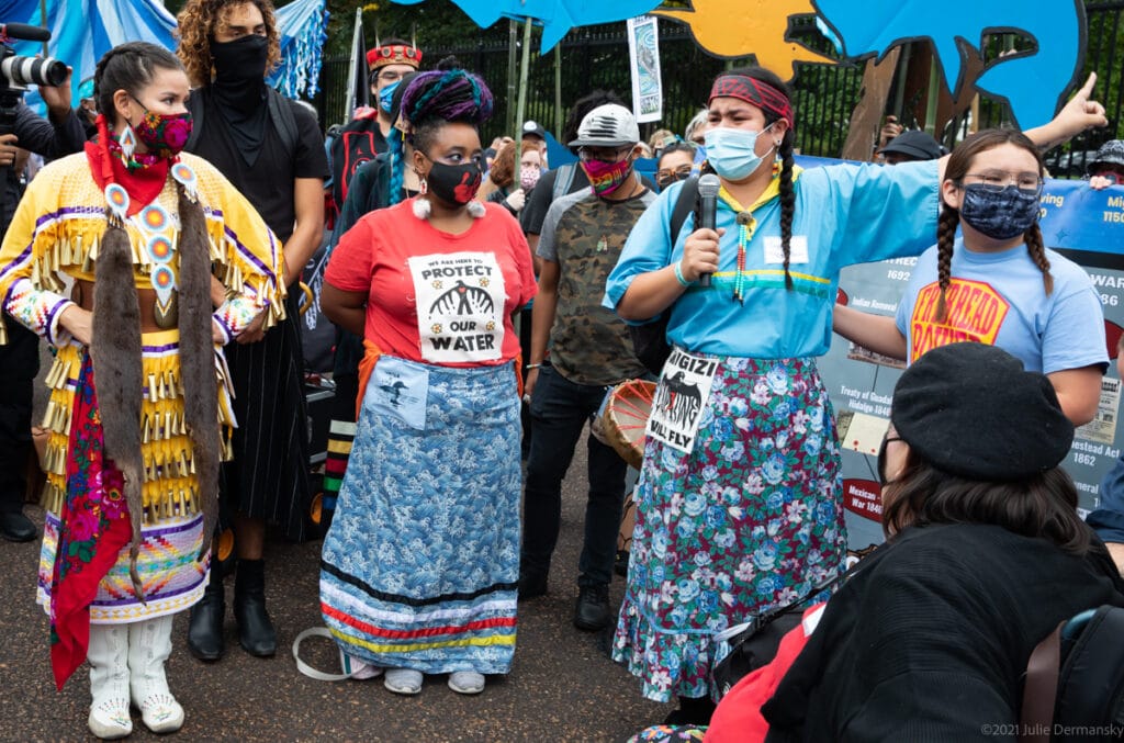 On October 11, Indigenous People’s Day, 136 people, including many Indigenous leaders opposing fossil fuel projects, were arrested in front of the White House in Washington, D.C., while calling on President Biden to declare a climate emergency and to stop approving fossil fuel projects. The day marked the first in a five-day-long series of protests in the nation’s capitol organized by the Build Back Fossil Free coalition, which is made up of numerous environmental and social justice advocacy groups.