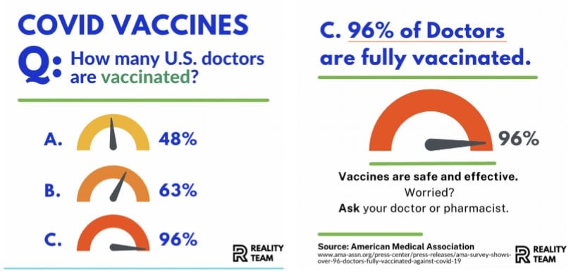 Reality Team ran Instagram ads aiming to put easy-to-digest information about climate change and vaccines in front of those viewers as they scrolled through social media feeds and ads. The group aimed to build people’s confidence in facts, arm them against disinformation campaigns, and help them sort what’s real from what isn’t.