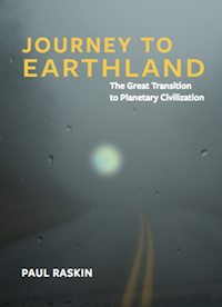 Journey to Earthland by Paul Raskin is an unusual work. It is not primarily an analysis of our present predicament or of our likely future. It is not an essay or a polemic. It is rather an evocation of an imagined benign future when all humankind will unite in a global ecological perspective where their common home will be designated as ‘Earthland’. It is a type of non-fiction fable or a dreamtime possibility of what might be. In this sense, the book sets out to serve as a destination, or orientation point, to guide our contemporary efforts to achieve a just and ecologically compatible human society. The logic is that we need to know where we are going in order to get there.