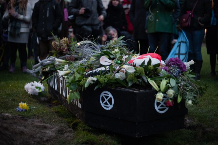 The event, hosted by Extinction Rebellion Ireland (XRI), will see a coffin representing the future of humanity carried from The Spire to outside St Stephens Green at 1pm on Sunday.