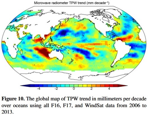 “Results show that these two TPW trends from independent observations are larger than previous estimates and are a strong indication of the positive water vapor–temperature feedback on a warming planet.“