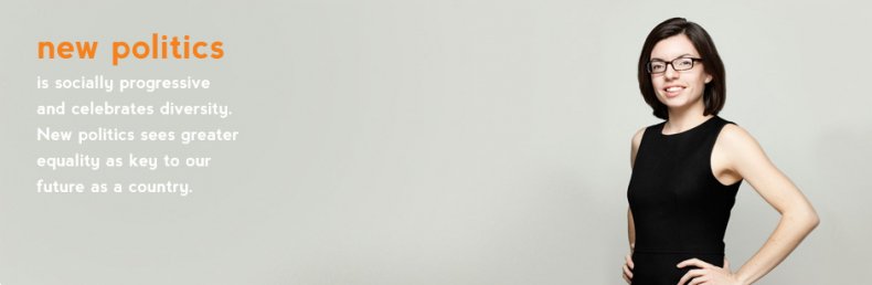 A promotional banner for Niki Ashton’s 2011 NDP leadership bid. Her campaign used the slogan “new politics” to describe a progressive, diverse vision of the NDP that brings Canadians together. Internet Archive screenshot