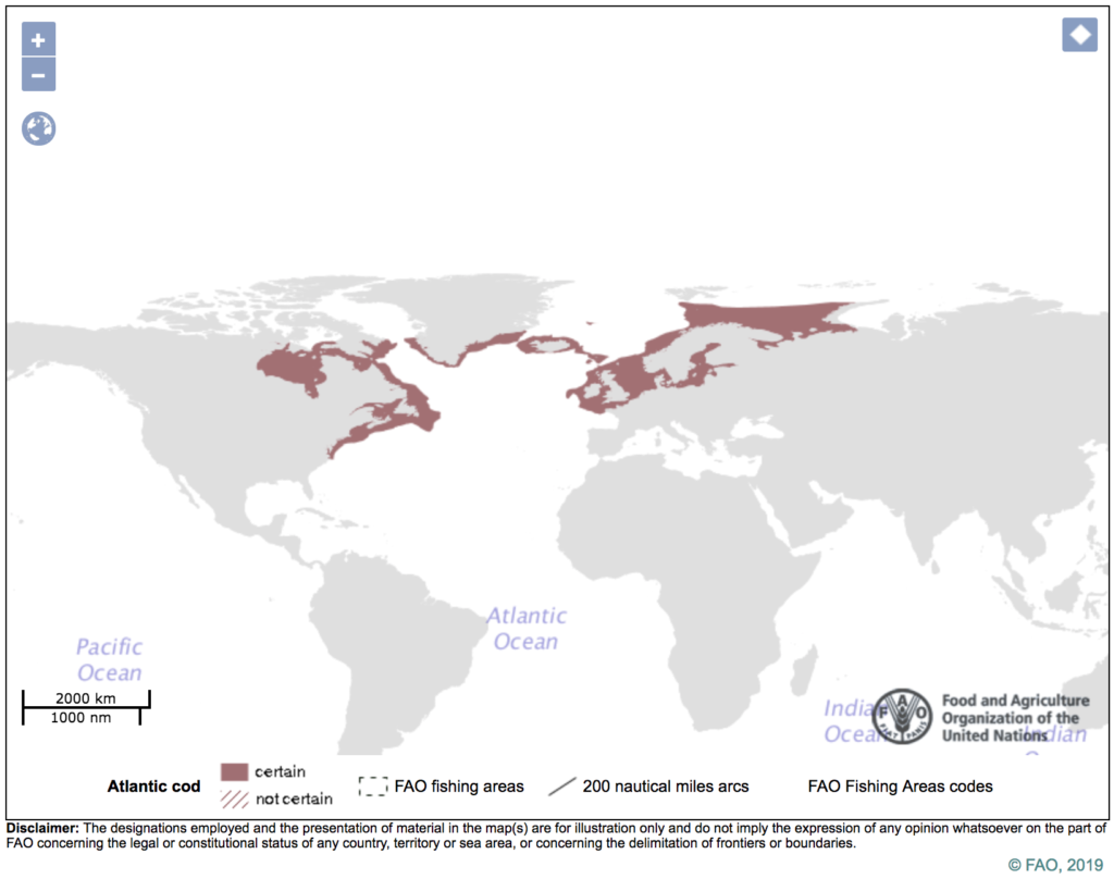 Global distribution of Atlantic cod. Source: Food and Agricultural Organization of the United Nations (FAO)