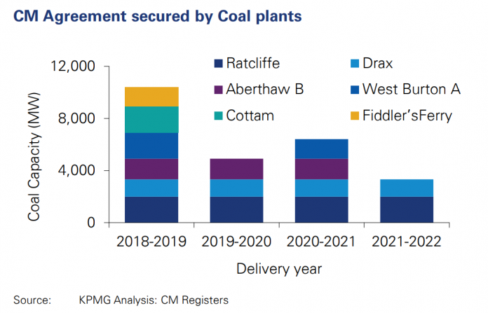 Coal capacity winning capacity market agreements in each of the main auction rounds held so far, megawatts (MW). Source: KPMG.