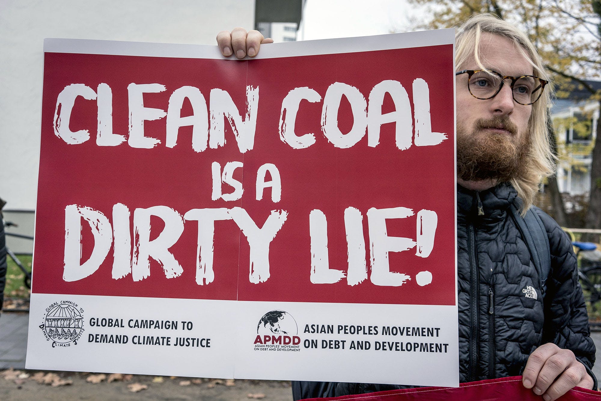 A man protests ahead of the high-level segment meeting outside of the World Conference Center Bonn at the COP 23 United Nations Climate Change Conference on Nov. 15, 2017 in Bonn, Germany.