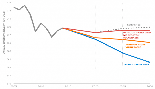 As can be seen (above), the 605 Mt estimate only accounts for reductions at stake in the period to 2030 – who knows how long it would take the US to get back on a decarbonisation pathway if all Obama-era regulations are rescinded?