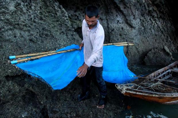 Despite authorities’ reassurances, the fishermen can perfectly visualise the large vessels transporting coal scraping the seabed, killing species that live at the bottom of the Andaman Sea.