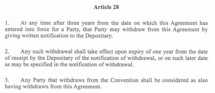 Excerpt from the Paris Agreement setting out the terms for withdrawal
