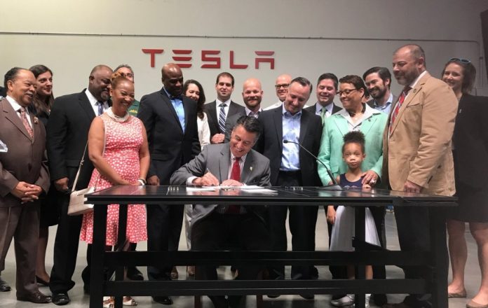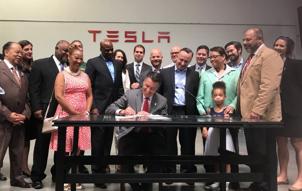 Tesla played an important role in restoring net metering in Nevada. As early as March 2016, Tesla CEO Elon Musk invited state lawmakers for a sneak peek of the Gigafactory, Tesla’s secretive battery factory in Reno, where Musk and SolarCity founder Lyndon Rive lobbied against the December 2015 slashing of the state’s net metering program.