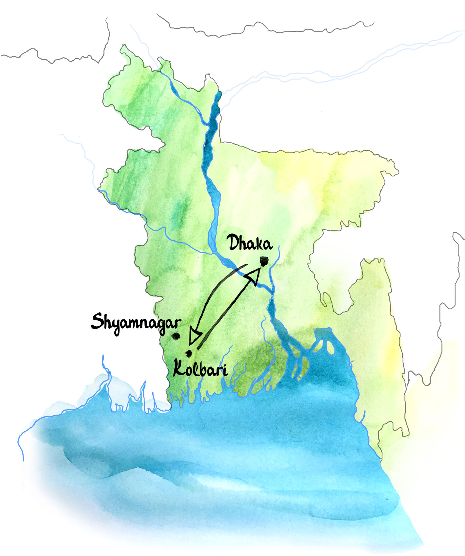 They left for Shyamnagar town, 15km away, where for four months he made 300-400 taka a day ($4-5) driving a rented motorbike.