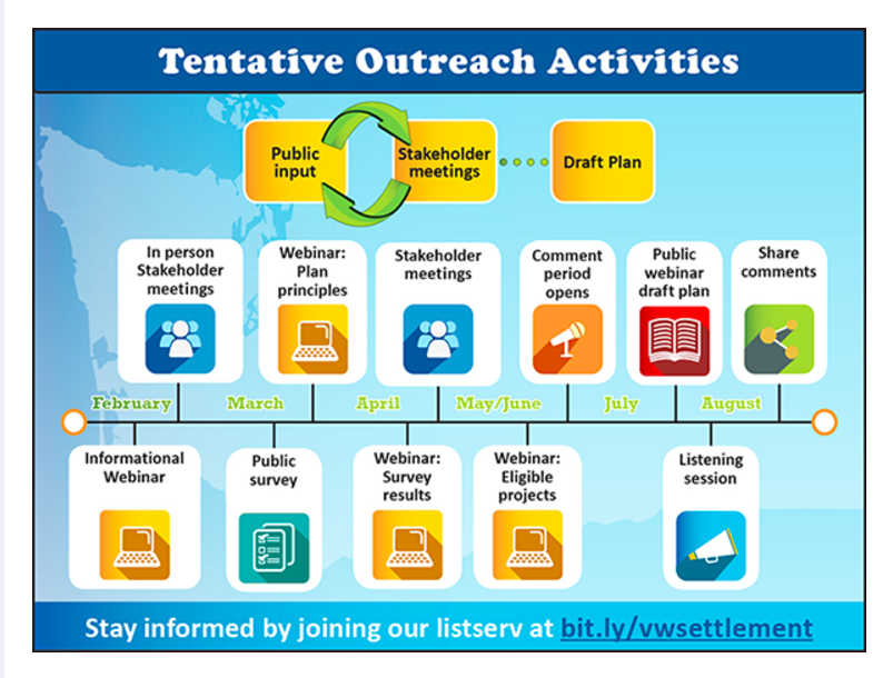 This is just one example, from Washington, of the education and outreach some states have already launched to keep citizens informed about plans for spending tens of millions of dollars to be streaming to government coffers from the Volkswagen Mitigation Trust.